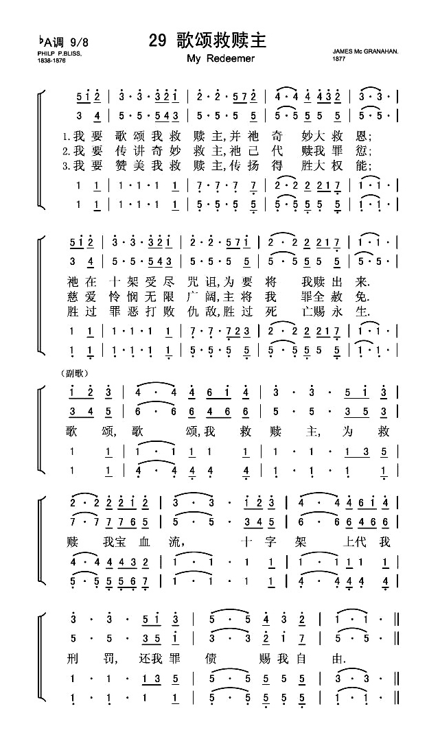 歌颂救赎主 – 四声部简谱