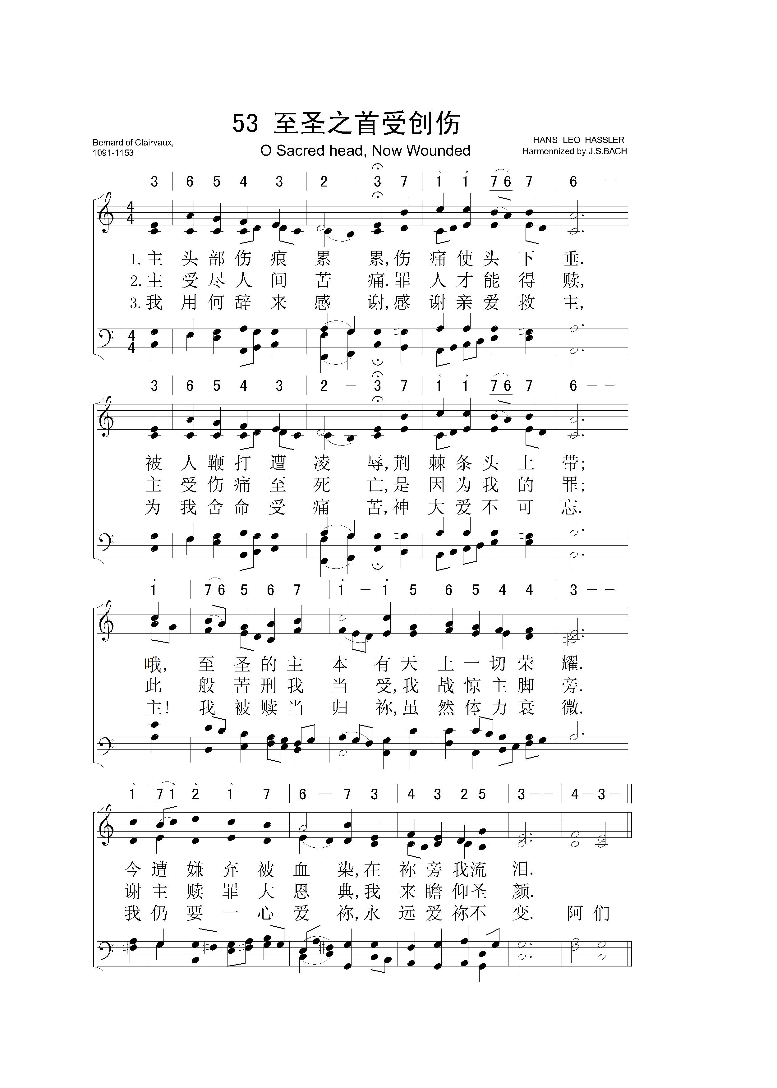至圣之首受创伤 – 四声部五线谱