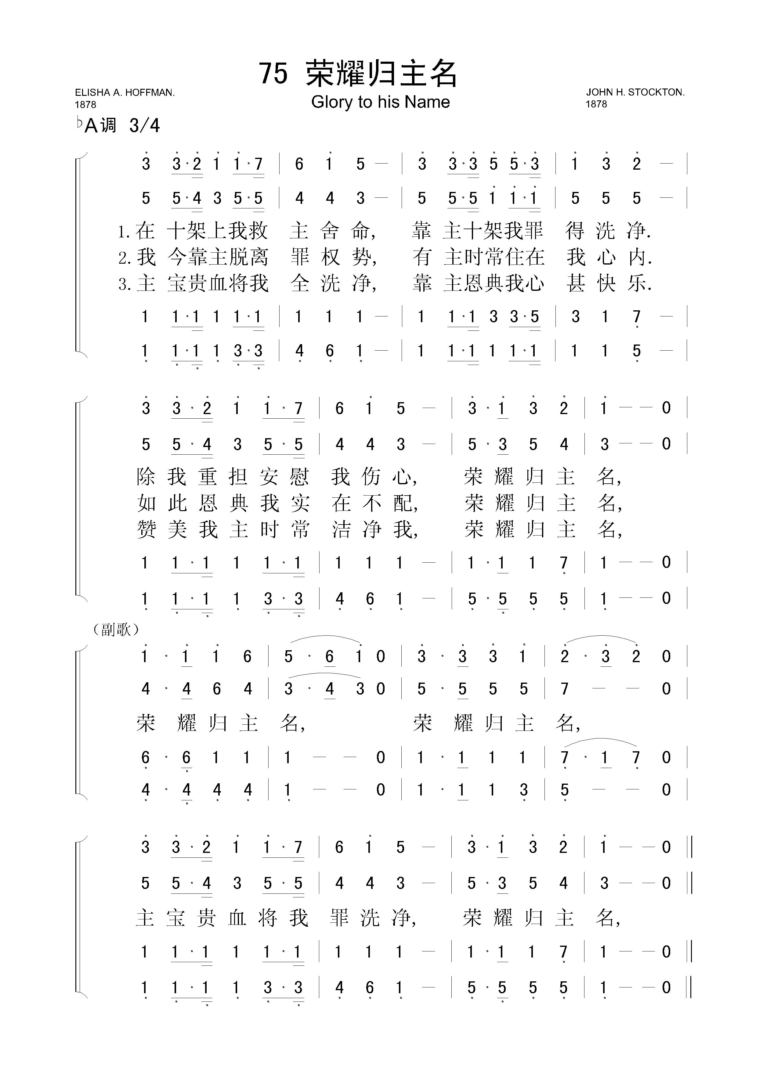 荣耀归主名 – 四声部简谱