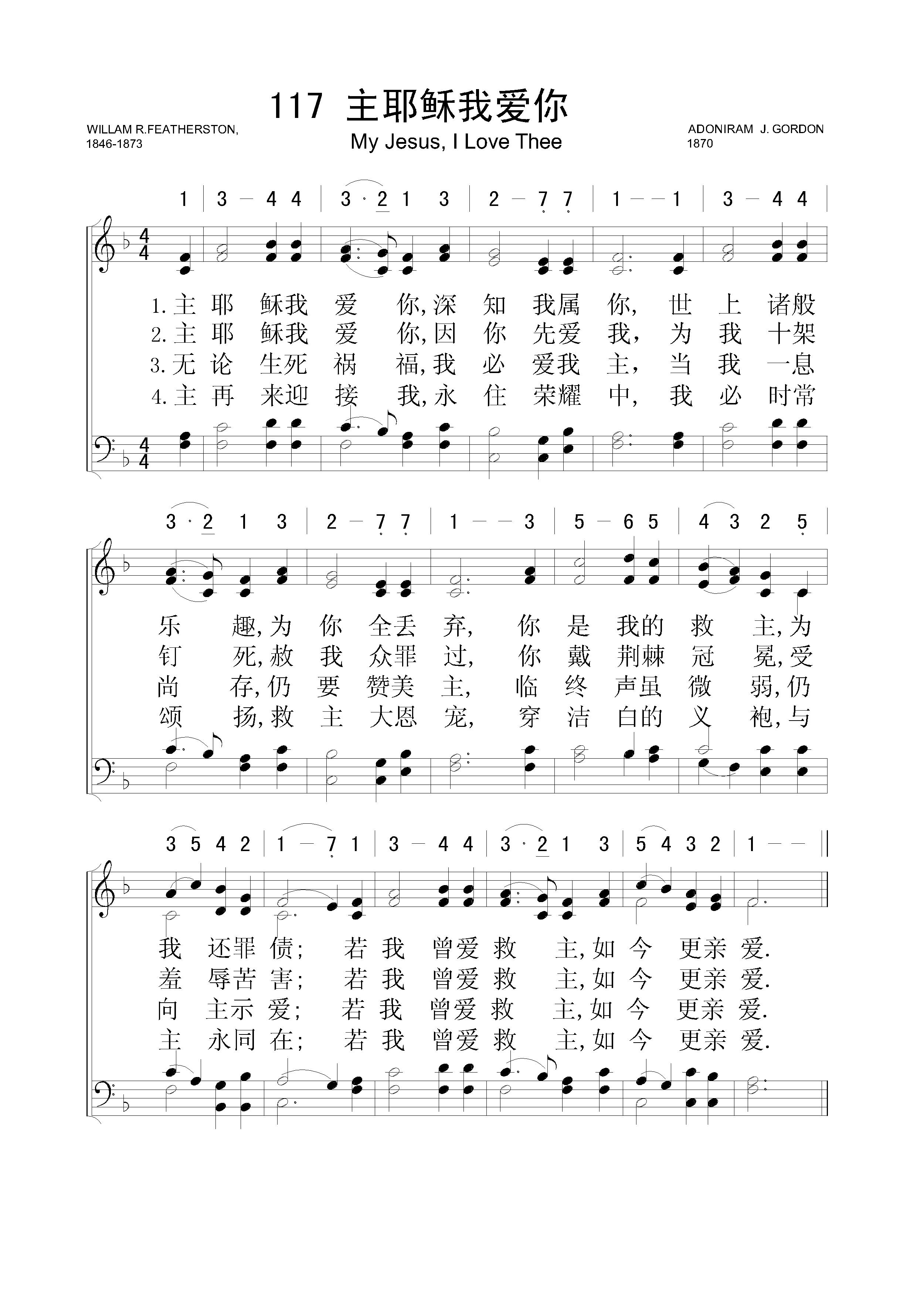 主耶稣我爱你 – 四声部五线谱