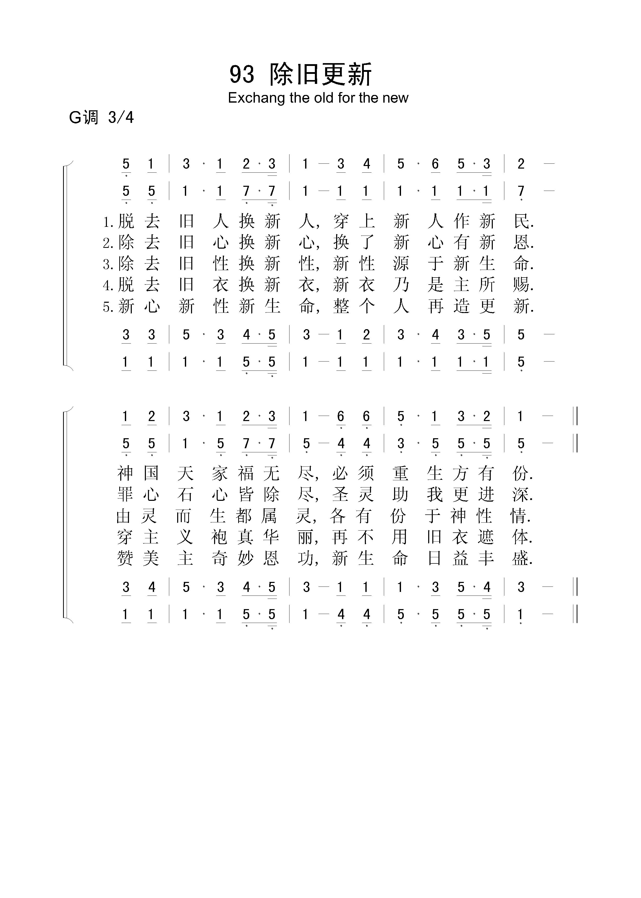 除旧更新 – 四声部简谱