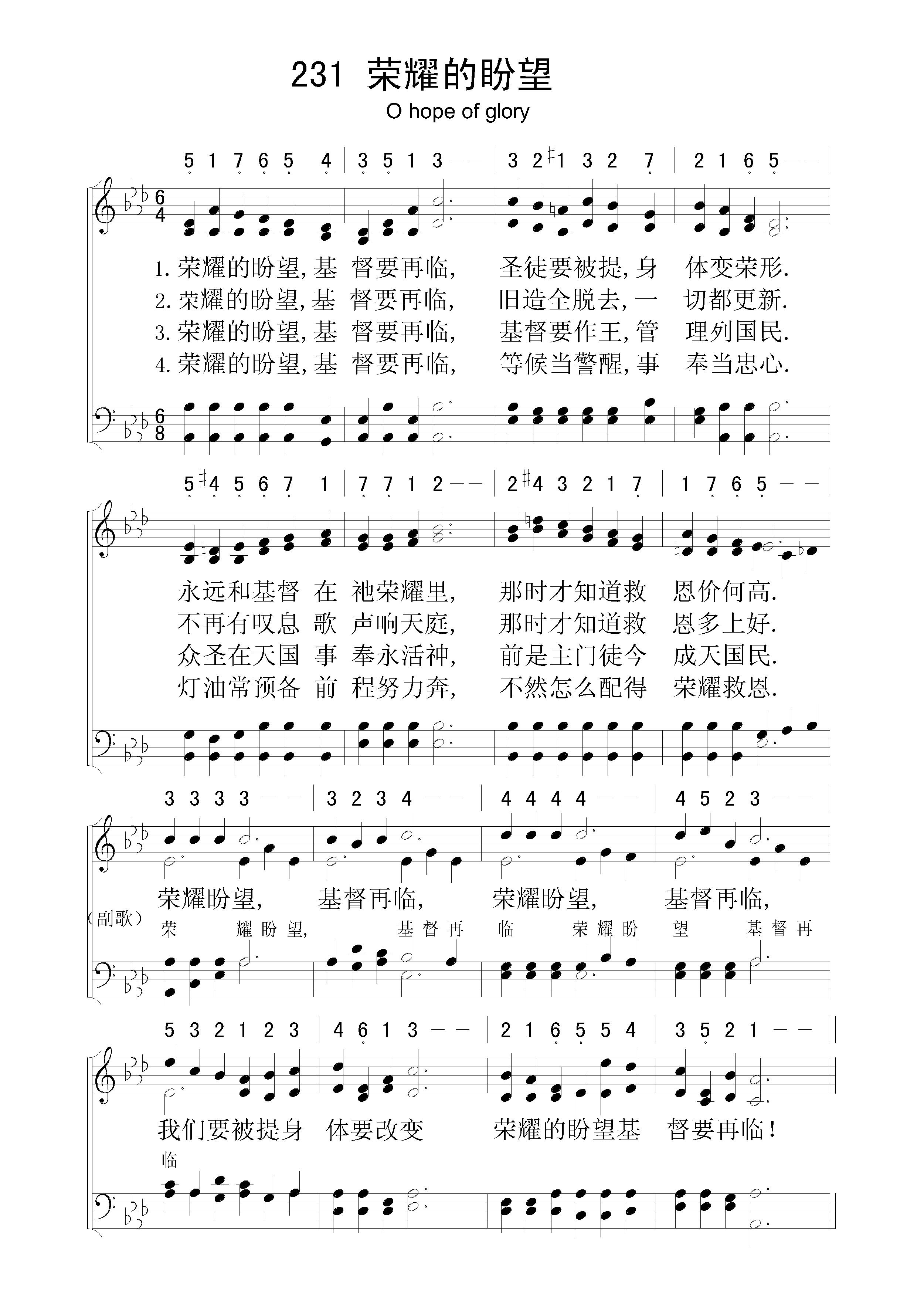 荣耀的盼望 – 四声部五线谱