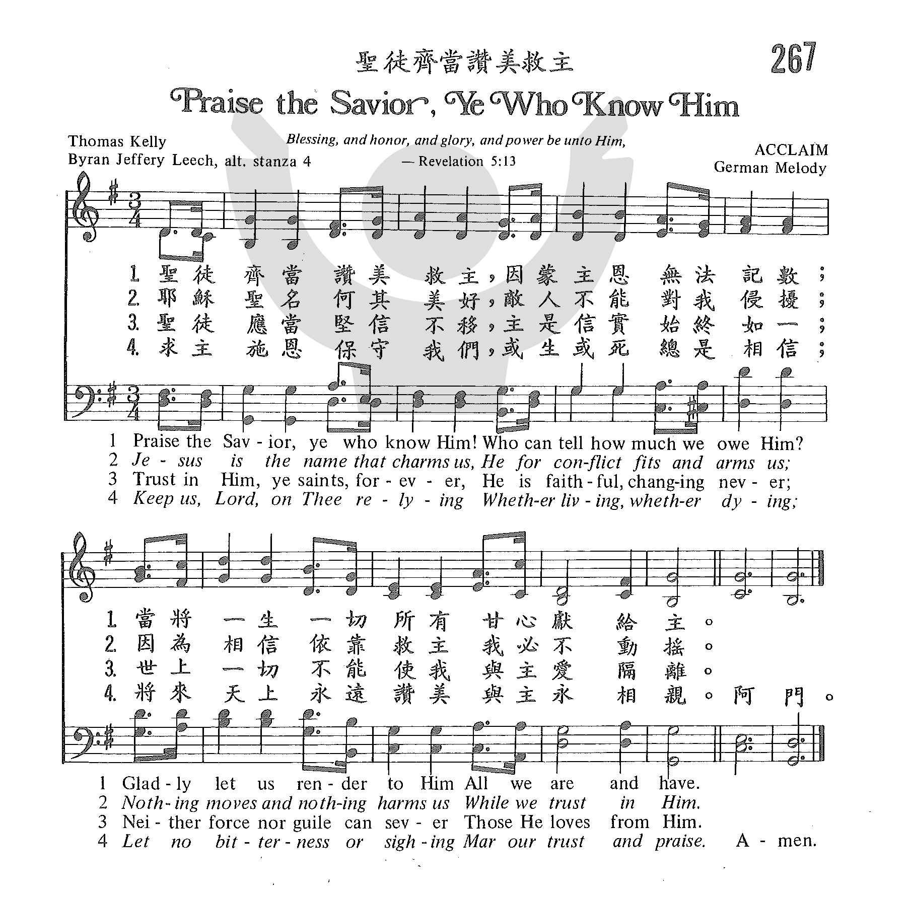 圣徒齐当赞美救主 选自《教会圣诗》第267首