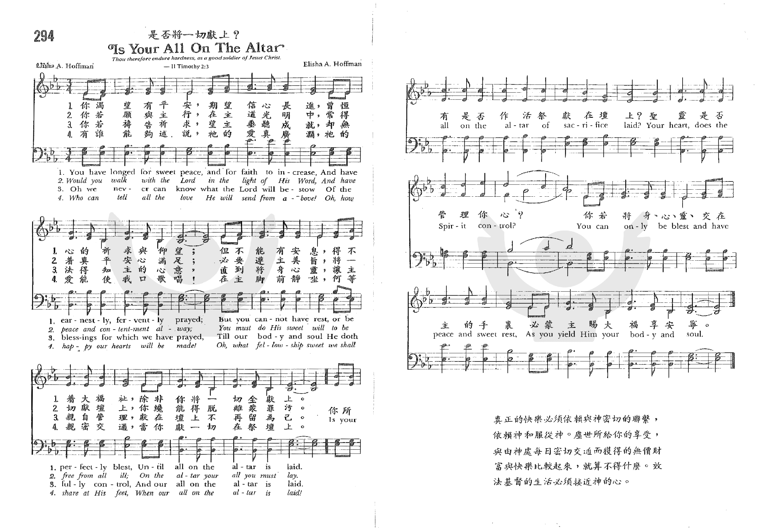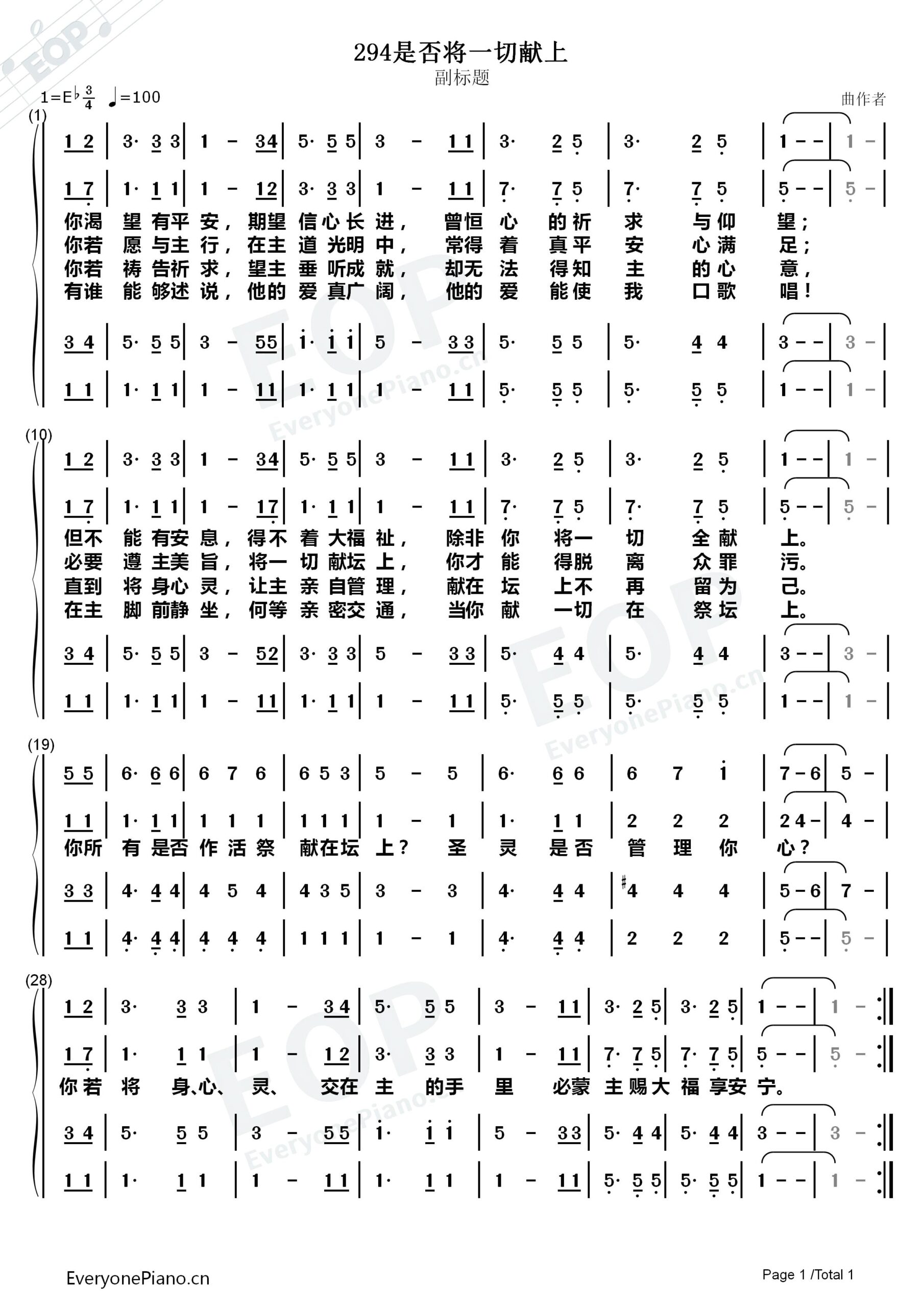 是否将一切献上 选自《教会圣诗》第294首