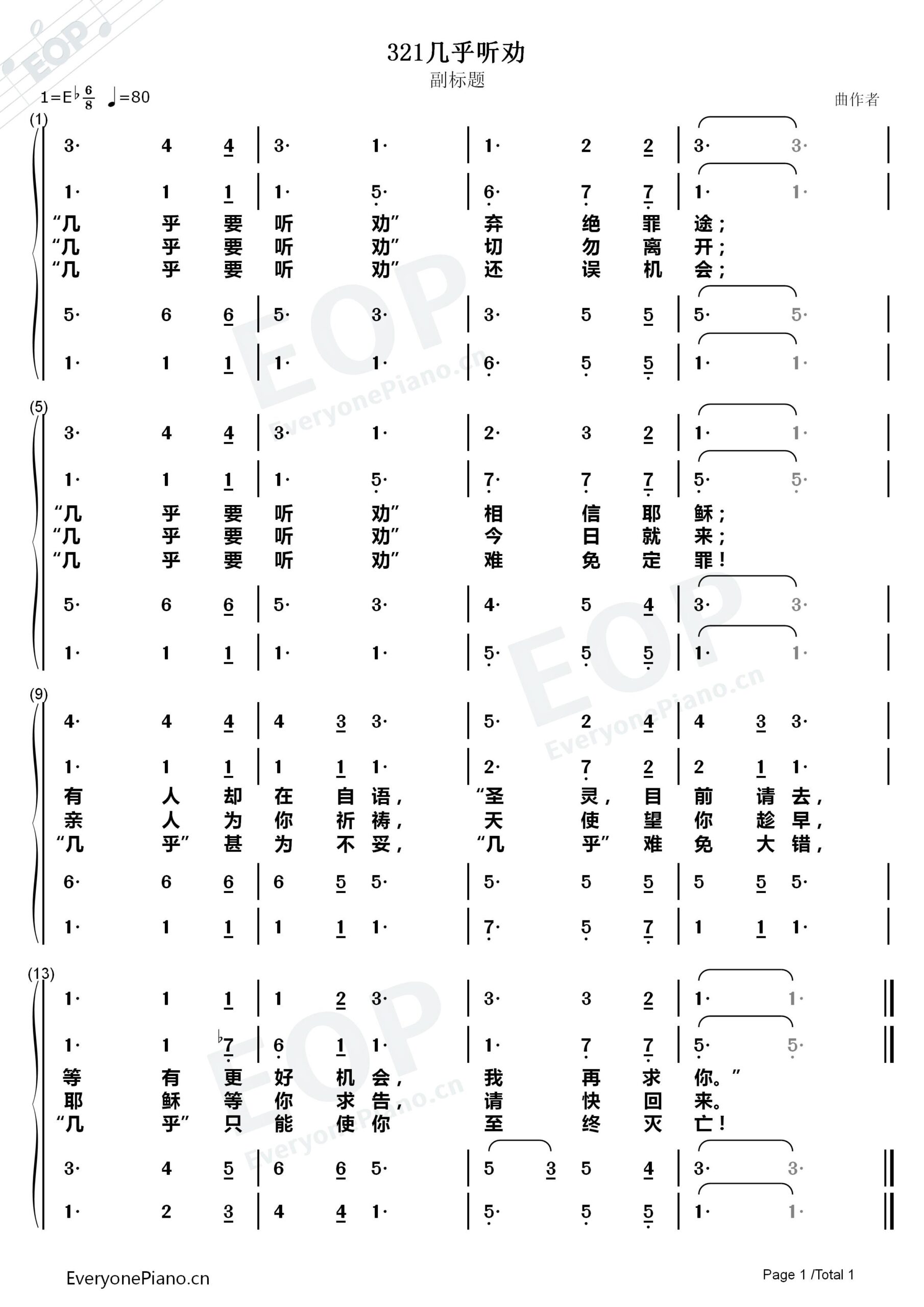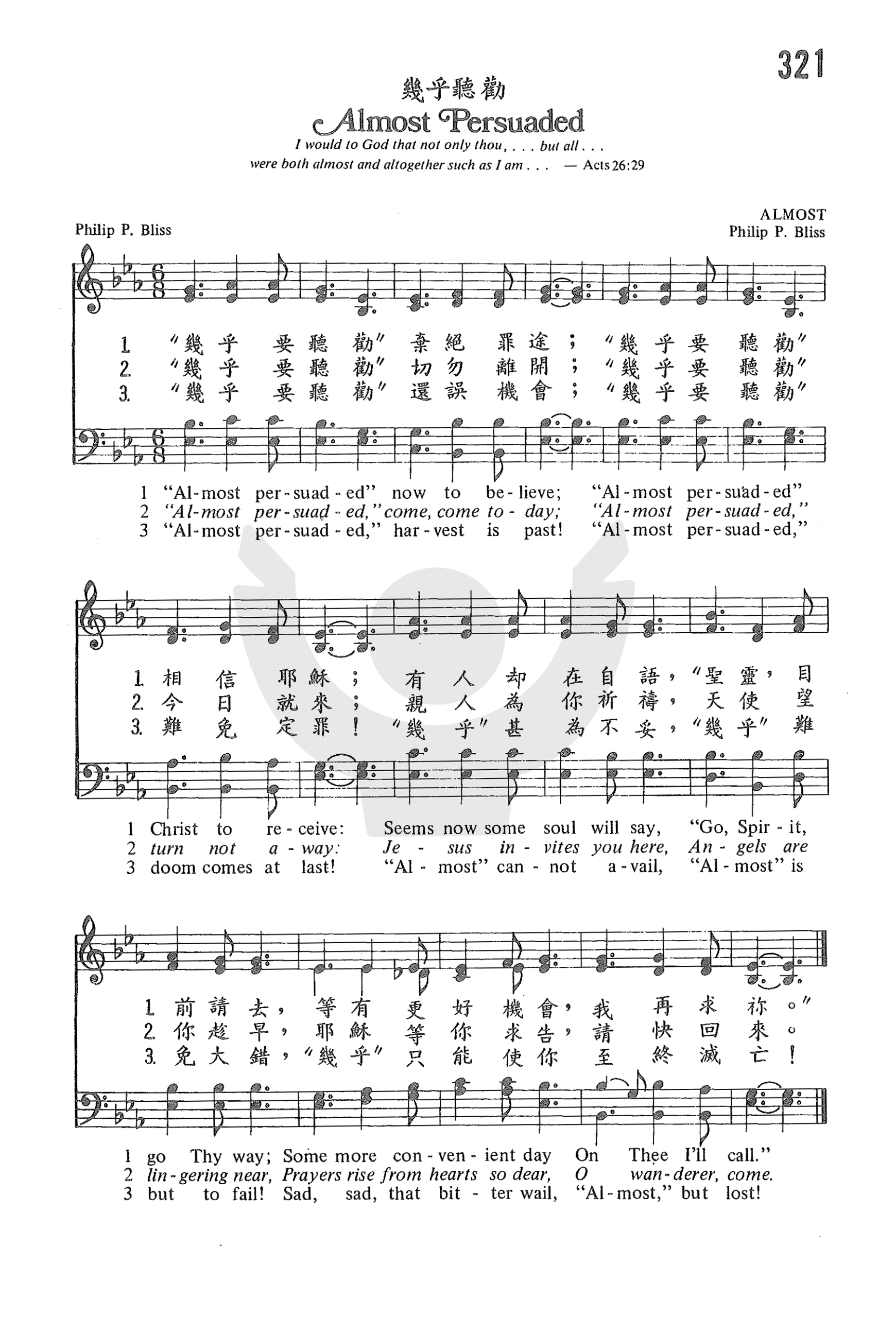 几乎听劝 选自《教会聖诗》第321首