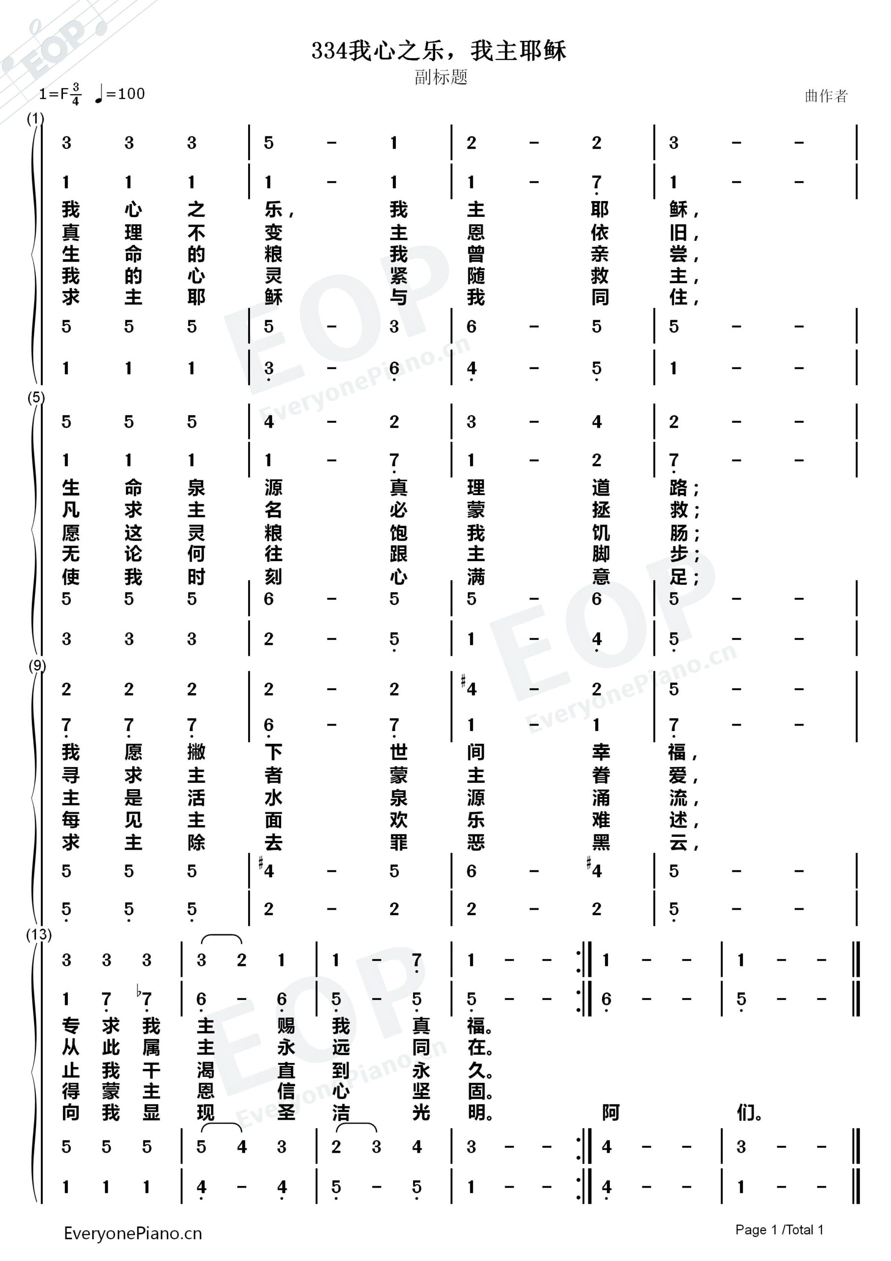 我心之樂,我主耶穌 选自《教会圣诗》第334首
