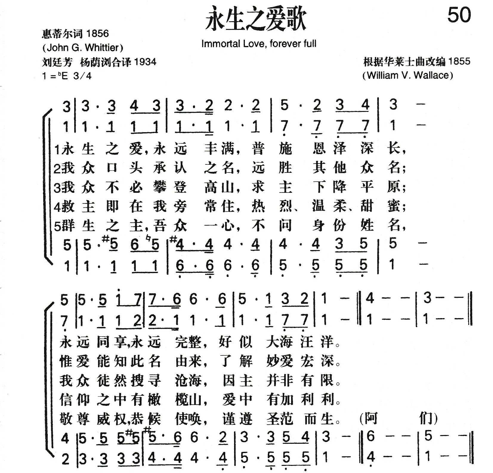 这是从美国著名诗人、散文作家、废奴运动的旗手惠蒂尔长达三十八节的诗《我们的主》中选出。原诗发表于 1867年所出版的波士顿公理会杂志。《普天颂赞》第55首还选了下列两节 :