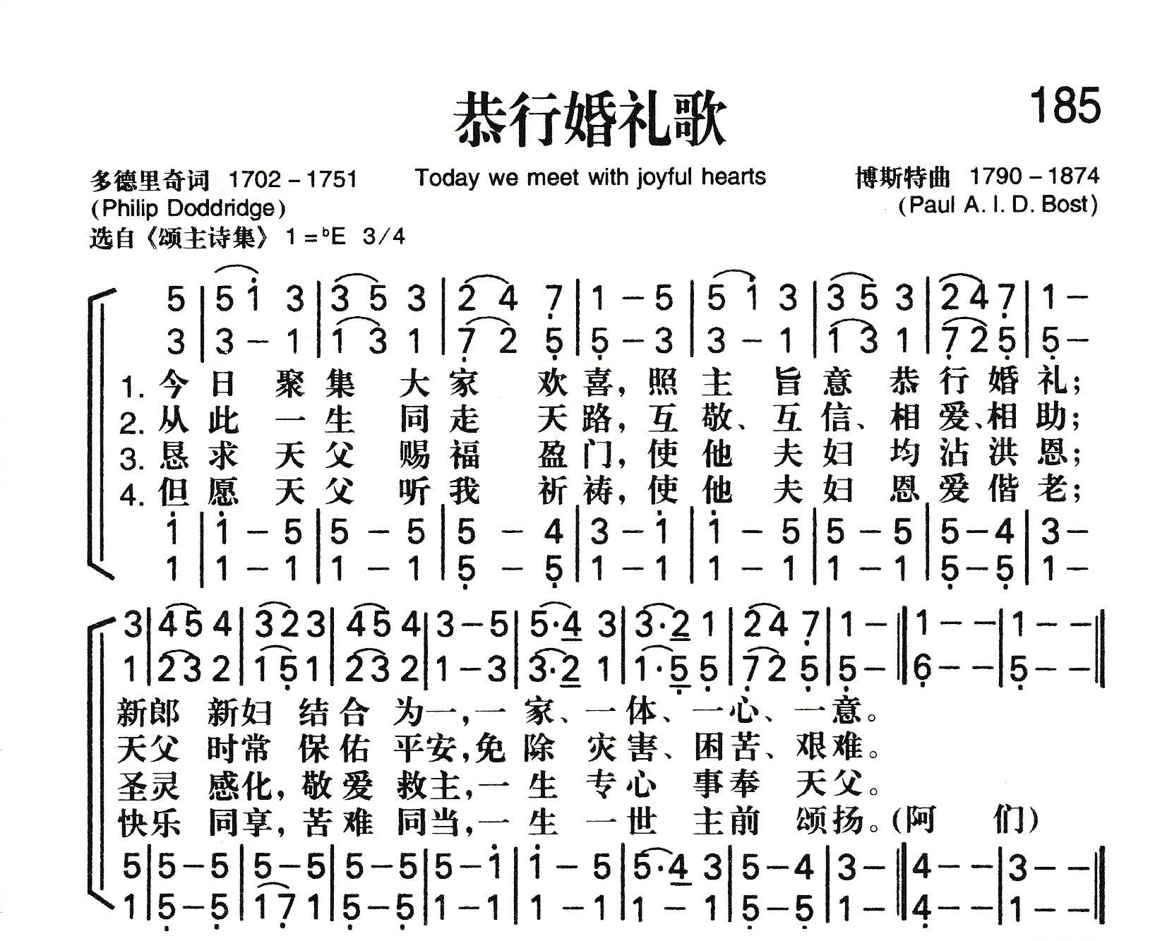 调名《感恩 (GRATITUDE)》,据传原曲是博斯特,(P.A.I.D .Bost,1790一1874)所谱。目前仅知道博斯特是瑞士日内瓦人,曾为当代教会音乐作出贡献,谱写了若干当时通用的韵文诗篇的曲调。
