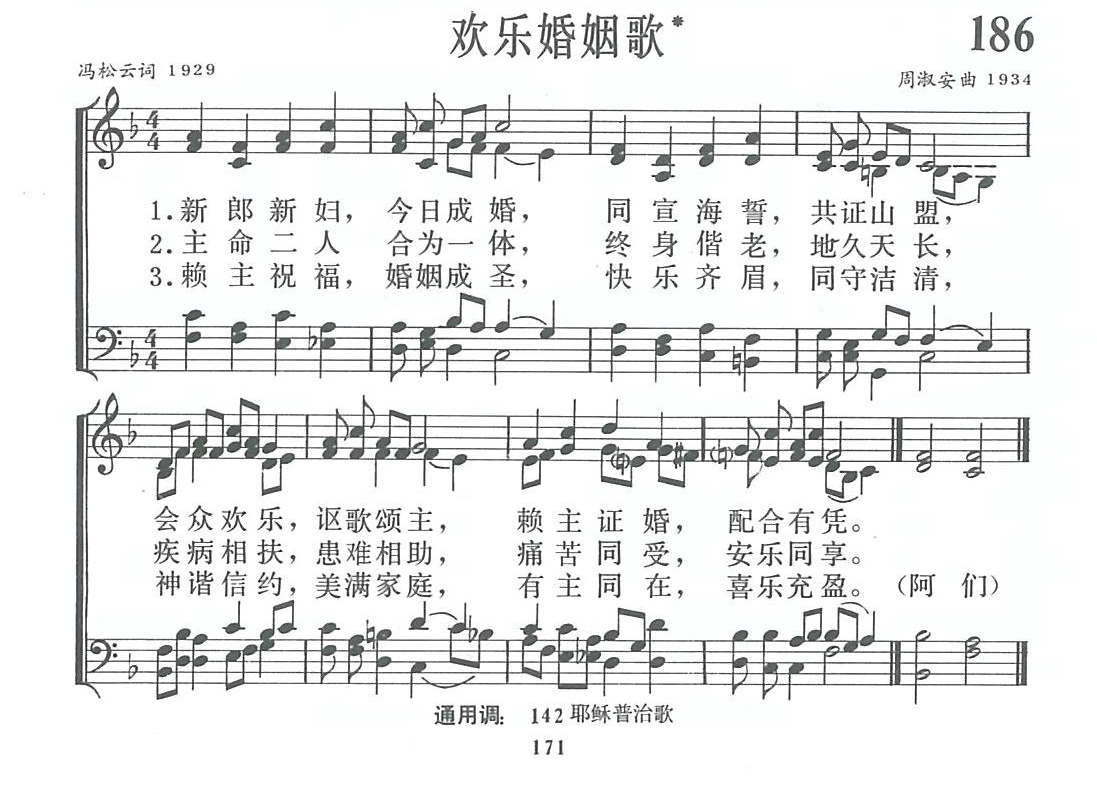 诗班在指挥指导下,要把新郎新妇奉主命合为一体,联成婚姻伴侣,讴歌颂主、神偕信约的欢庆意境表达出来。设定速度稍快一些,才能欢乐气氛表达清楚。