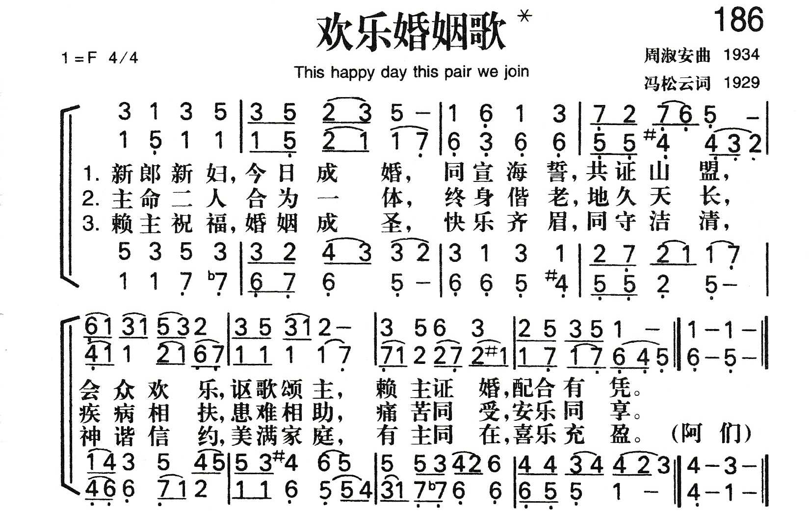 这是中国信徒冯松云 (1833一 1912)所作的一首诗,可惜作者的事略不详。原见于《普天颂赞》 (旧版)第211首,原名《齐眉歌》。