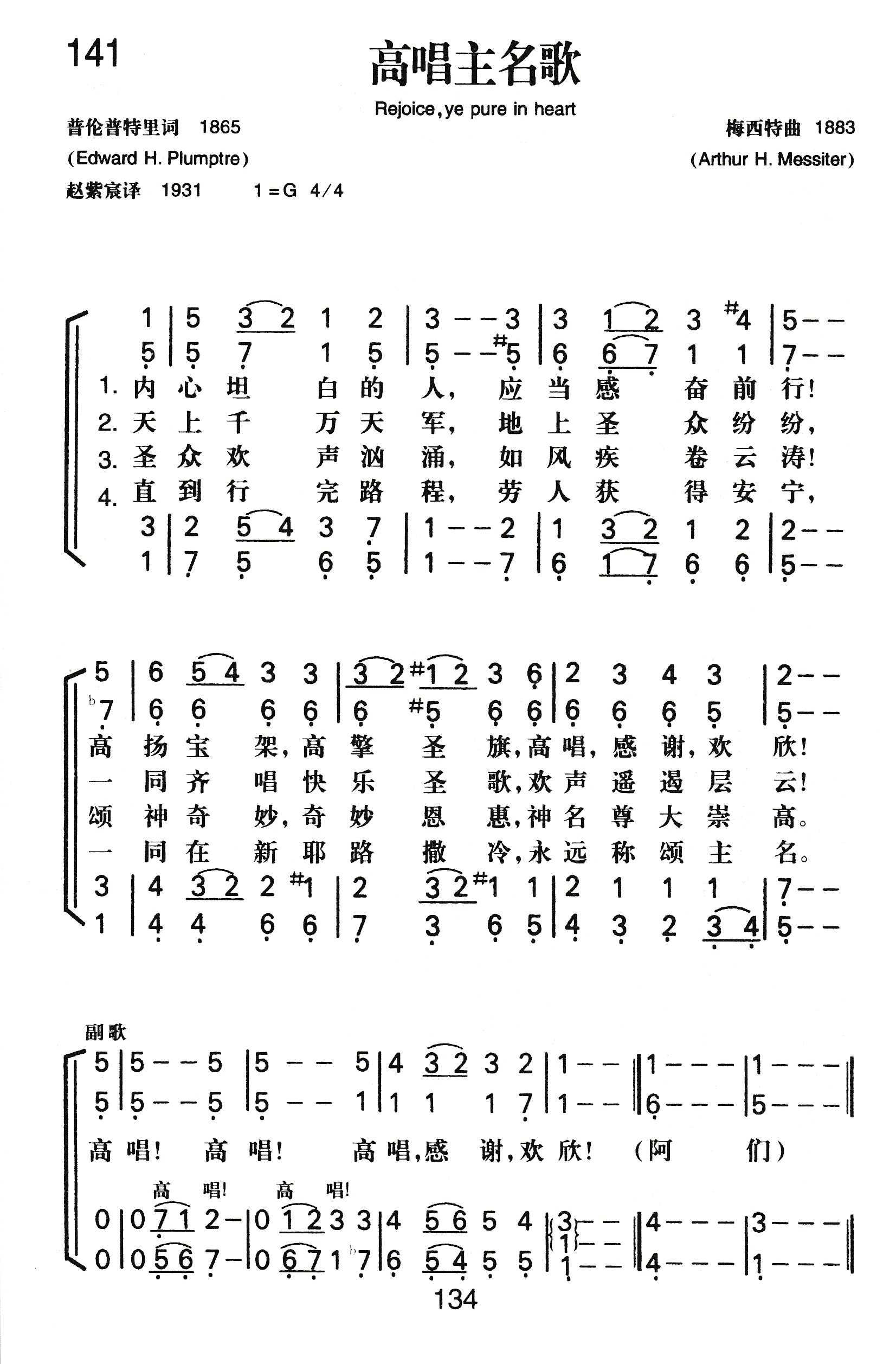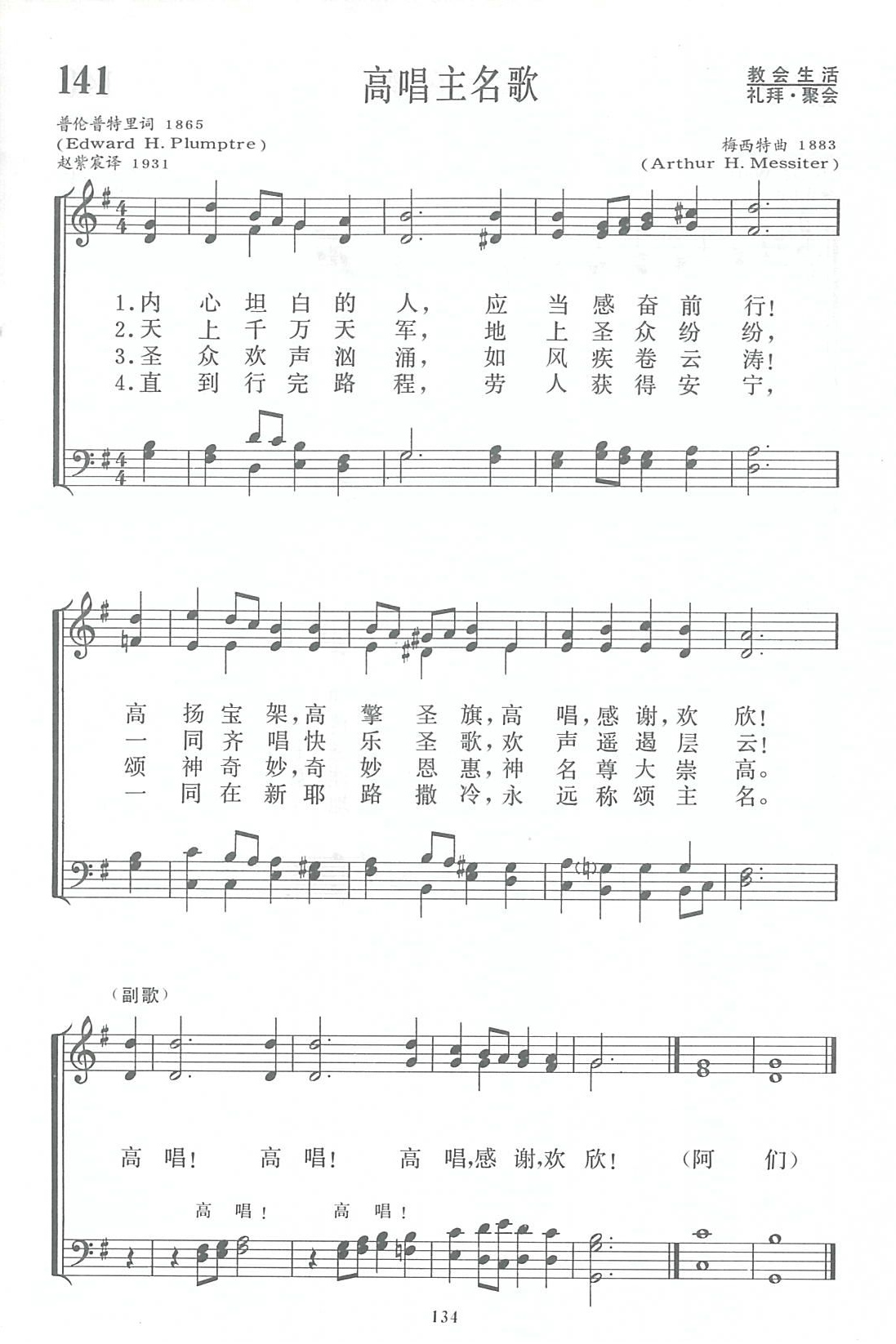 《高唱主名歌》是英国圣公会牧师普伦普特里(E.H.P1umptre,1821一 1891)为 l865年在英国彼得堡罗夫主教座堂所举行的唱诗班节目而写的,是一首进堂赞美诗。原载于《古今圣诗》的附录曲中,共有十节,包括最后一节的三一颂。