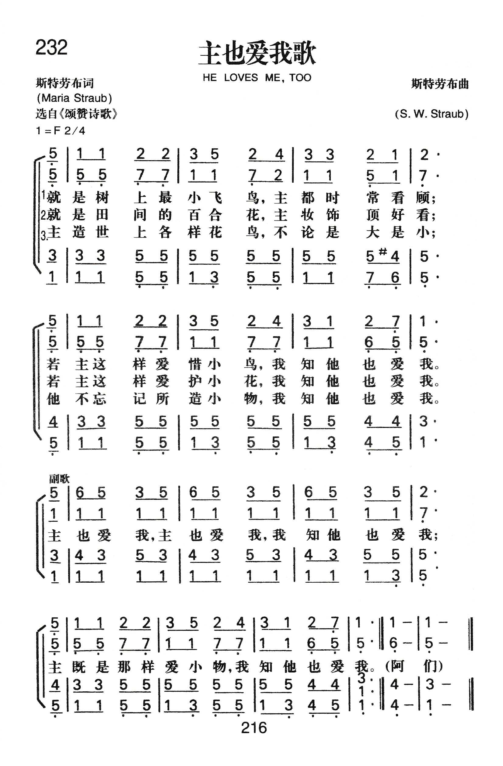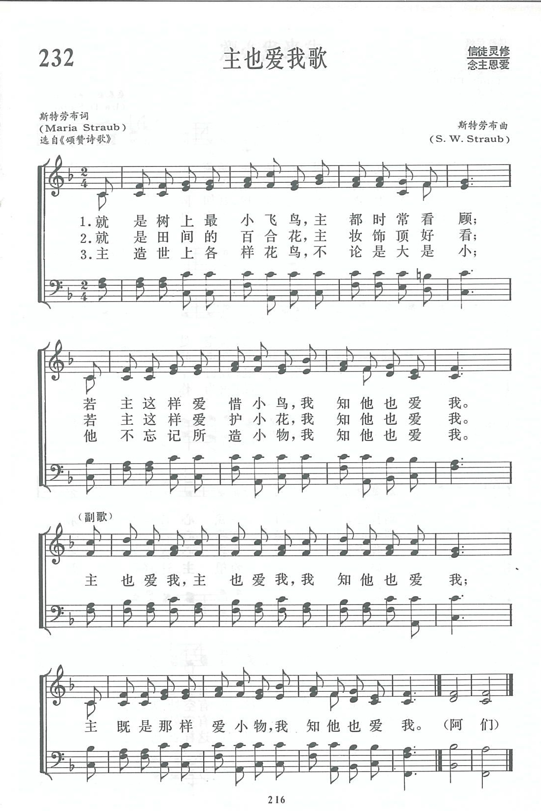 这首诗根据主耶稣在登山宝训中教导我们勿虑衣食的那一段经文:“你们看那天上的飞鸟……天父尚且养活他……”(太6:26)。联想到“主也爱我,主也爱我,我知祂也爱我……。”[dropdown_box expand_text=”全文” show_more=”显示” show_less=”折叠” start=”hide”]