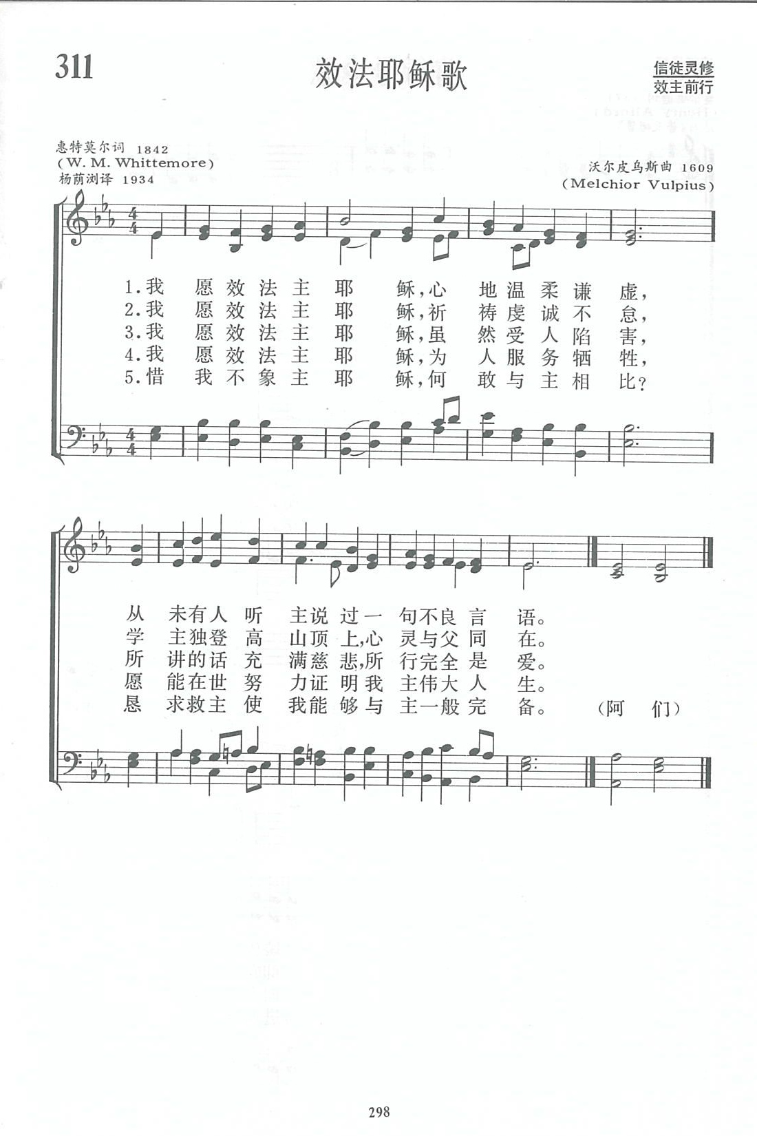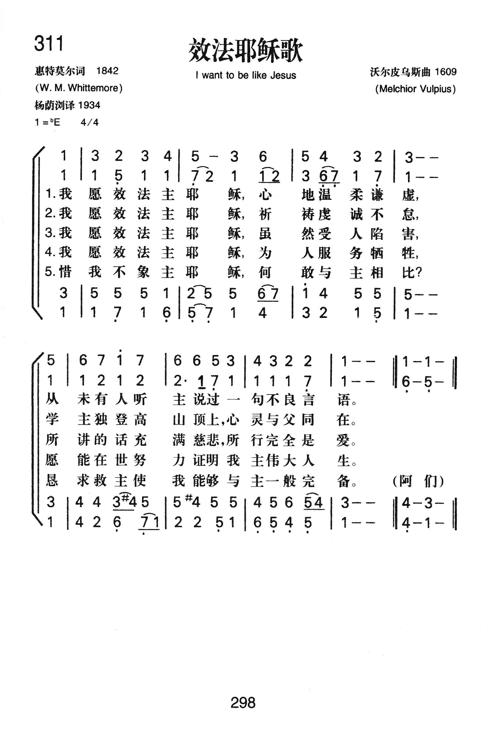 这首诗的词作者惠特莫尔 (W.M.Whittemore ,182O一 1894)乃英国圣公会伦敦圣凯瑟堂牧师,《阳光》杂志的编辑。这首诗原载于他所出版的《儿童祭坛》一书中,是一首简洁生动的青年圣诗,要求信徒效法主耶稣:“心地温柔谦虚” (第一节),“祈祷虔诚不怠”(第二节),“所行完全是爱”(第三节),为人服务牺牲”(第四节)各方面的美德,最后“恳求救主使我能够与主一般完备 ”作为结束。[dropdown_box expand_text=”全文” show_more=”显示” show_less=”折叠” start=”hide”]
