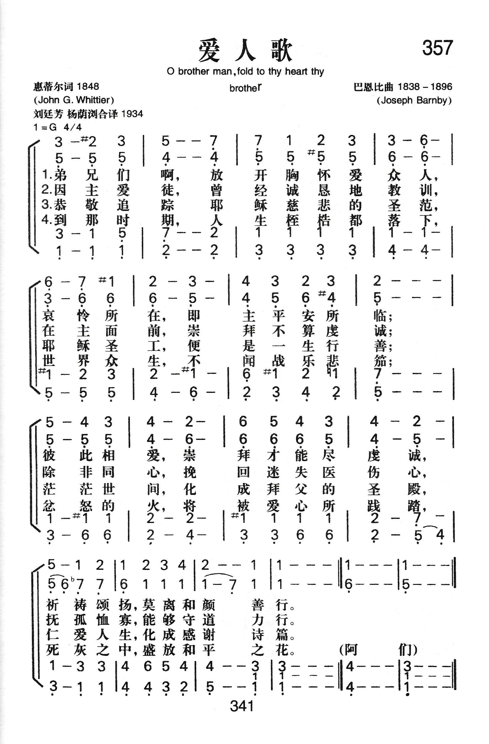 歌谱:1. 四声部简谱 2. 四声五线谱